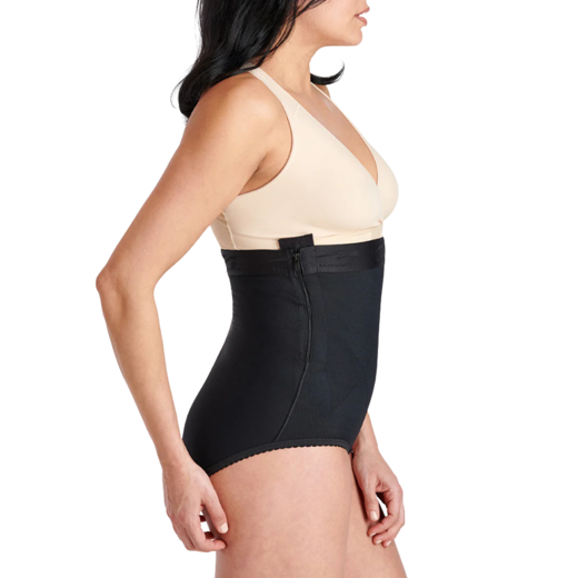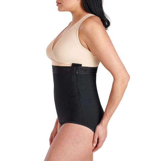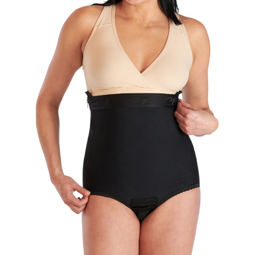 Þrýstingurinn getur einnig hjálpað til við að minnka legið aftur niður í fyrri stærð hraðar og draga úr bólgu. Innbyggðir rennilásar eru staðsettir á hvorri hlið og hægt er að opna þá að hluta til að vernda skurðinn.