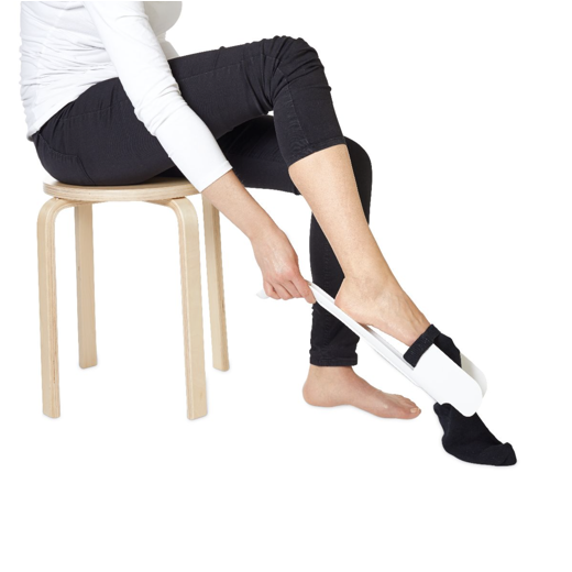 Stirðleiki og líkamleg vanlíðan getur gert það að verkum að erfitt getur verið að klæða sig í sokka. Vitilty sokkaífæran hjálpar fólki að klæða sig í sokka án þess að þurfa að beygja sig.