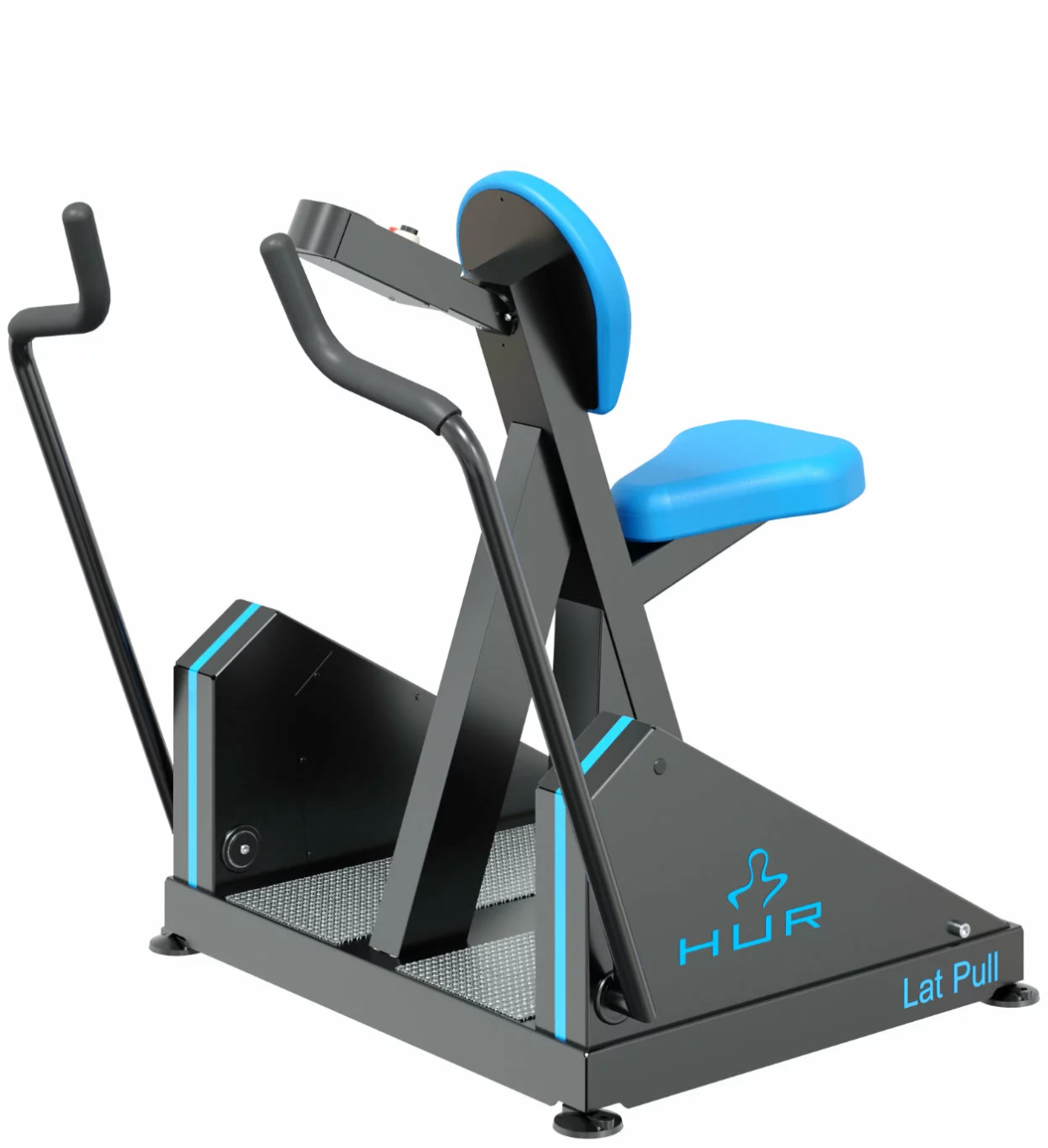 Lat pull-æfingatækið er hannað til að þjálfa bak- og axlarvöðva. Báðar stangirnar hreyfast sjálfstætt svo hægt er að þjálfa hendur til skiptis. Stillanlegir fætur sem gerir tækið stöðugra. Rafstillanlegt sæti.