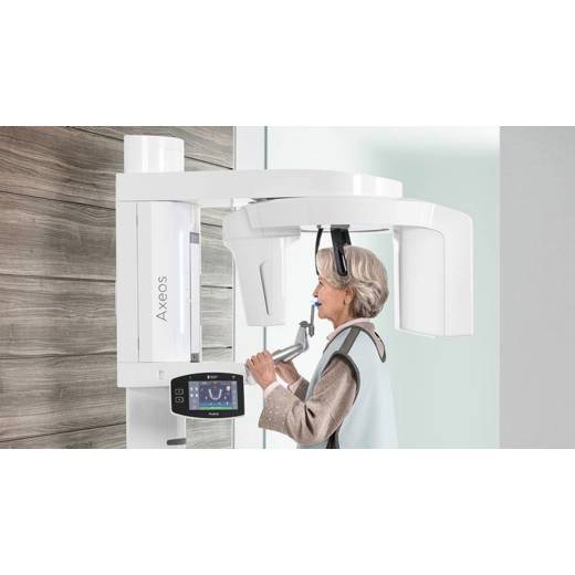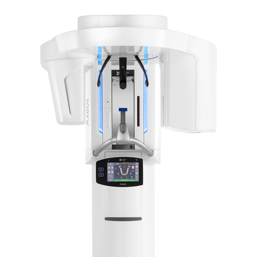 Axeos – the 2D/3D specialist system with a large volume and high image quality for practices with a broad treatment offering. Developed together with dentists and clinicians, Axeos provides the fullest range of functions out of all Dentsply Sirona extraoral X-ray devices. In addition to excellent image quality and tailor-made 3D volume sizes, the dental imaging device is fully optimized for enhanced patient comfort. Axeos not only provides quality in performance and comfort, but also with its award-winning design thanks to the integrated bite block accessory cabinet and ambient light.